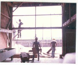 • Les étapes de construction et de rénovation se succédèrent: réparations à la maison (1981), la grange est rebâtie (1983), construction d’une cuisine et salle de toilettes (1983), la porcherie est transformée en Club House (1984), rénovations majeures dans la grange telles que l’ajout d’un système de chauffage, des tuiles, revêtement de bois, nouvelle cloison (1990-1991) et un stationnement en asphalte (2002).
